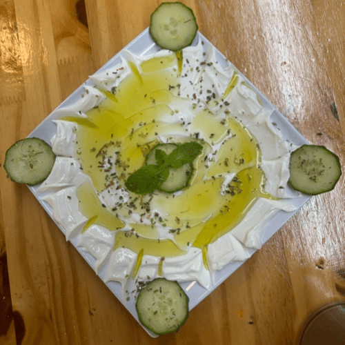 Cool dish of cucumbers, olive oil, and yogurt with mint