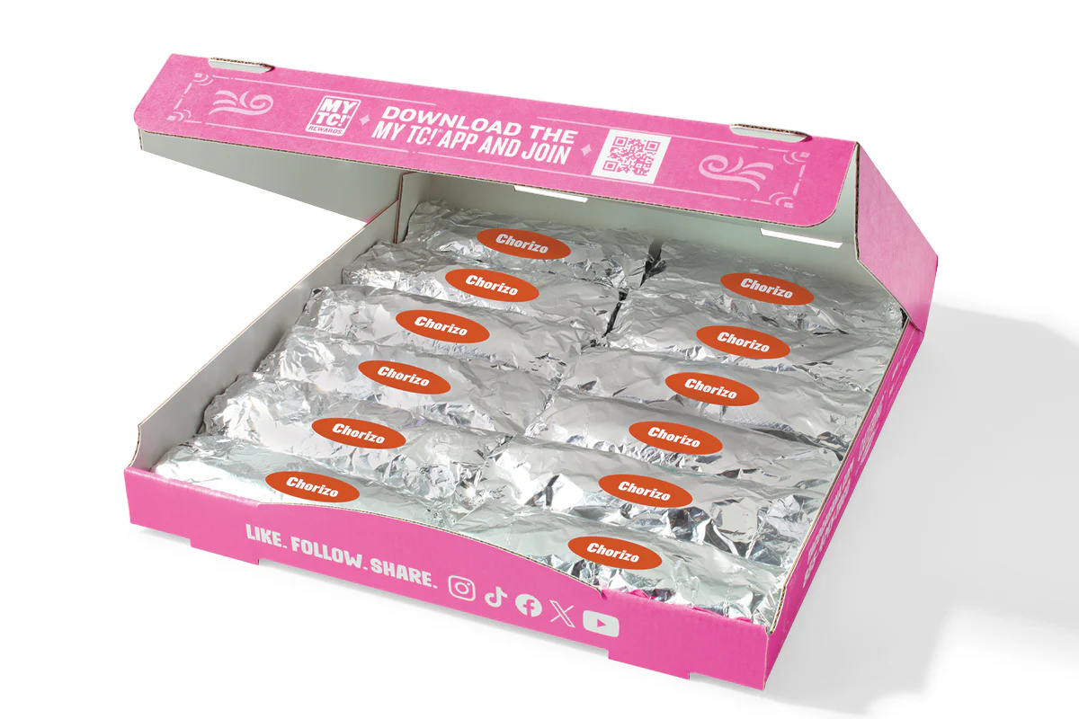 Crispy chicken tenders drizzled with TC's exclusive Cheetos Flamin' Hot Queso Rojo, topped with lettuce and tomato. >Meal Served with your choice of 20oz soft drink or Cabana Refresher, bag of Flamin' Hot Cheetos, and a side of Cheetos Flamin' Hot Queso Rojo