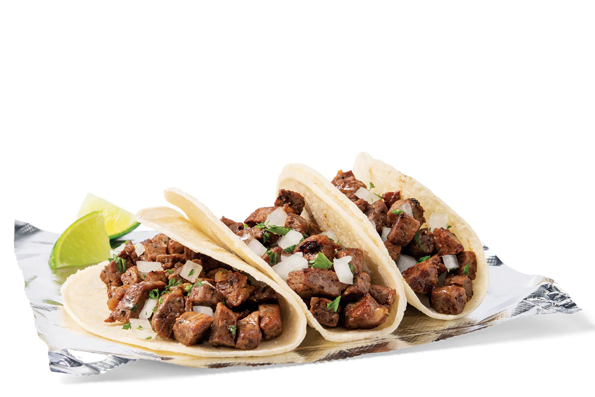 Fresh flour tortillas or crispy shells, filled with your choice of Ground Beef, Shredded Chicken, or Bean & Cheese. Served with your choice of small drink.