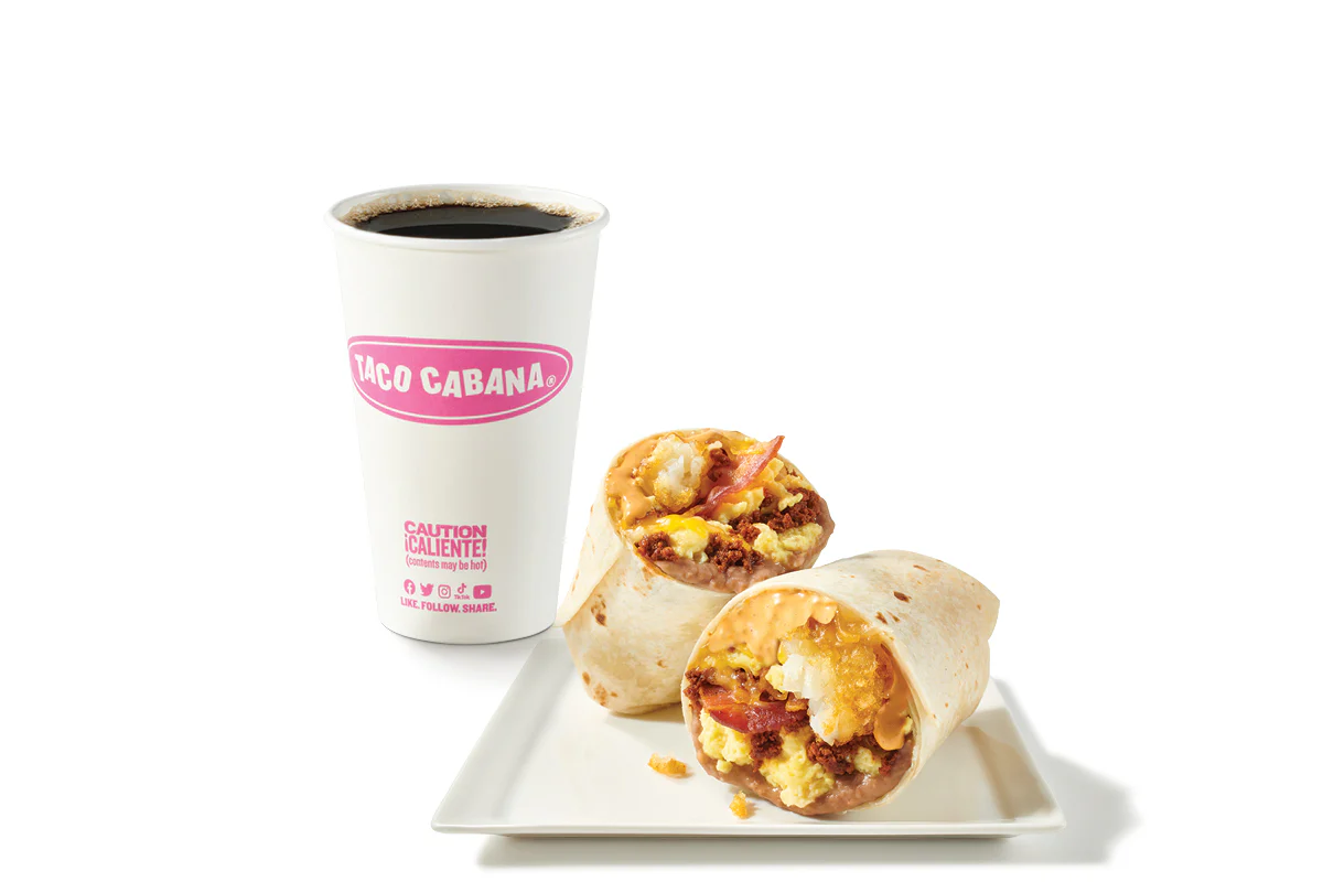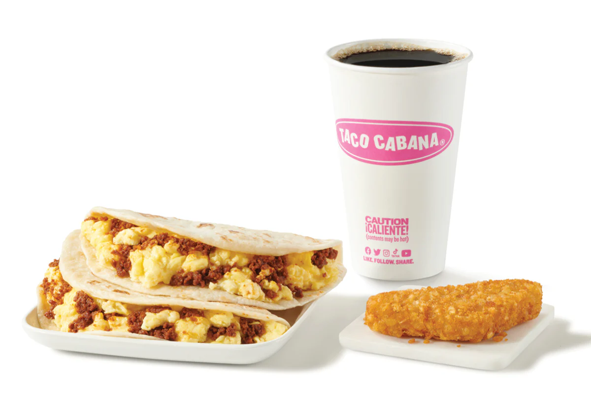 Fresh flour tortillas filled with your choice of Chorizo & Egg, Bean & Cheese, or Potato & Egg. Served with Hashbrown and your choice of coffee or small drink.