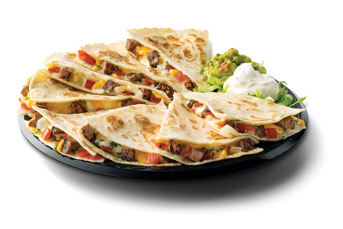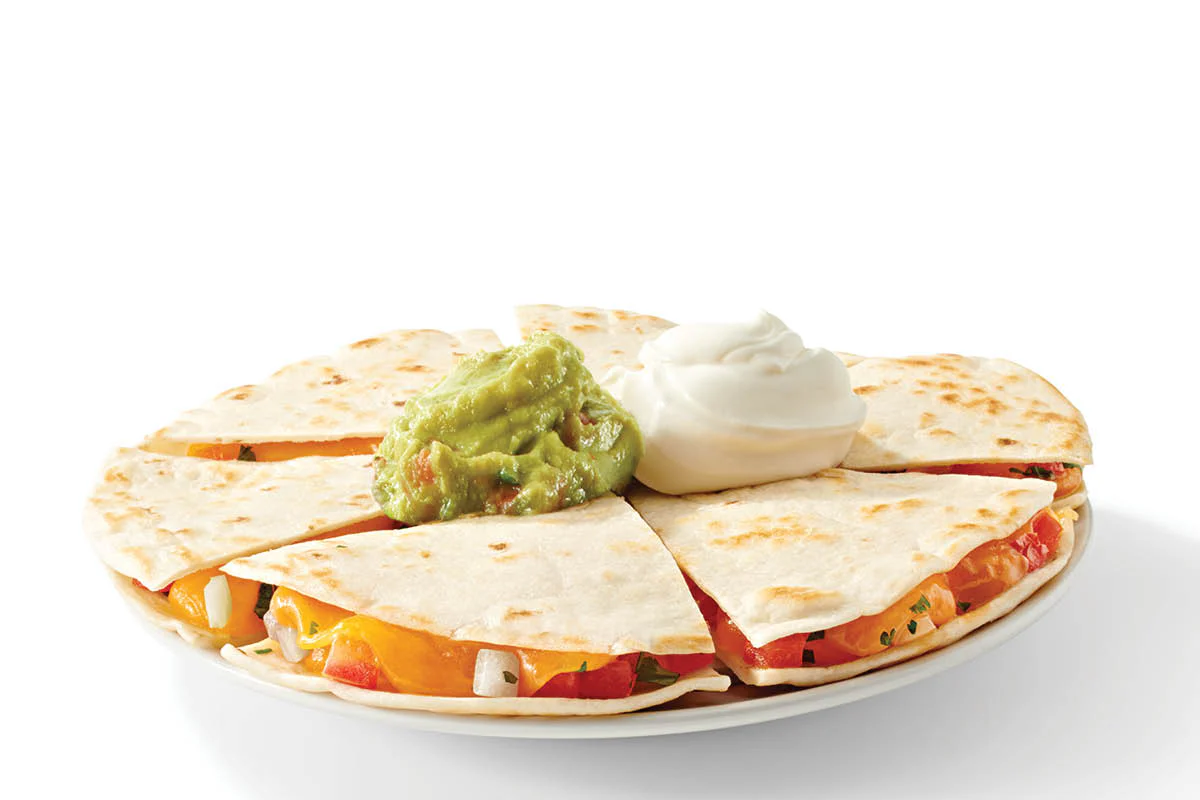 Two flour tortillas filled with melted Jack & Cheddar cheeses & pico de gallo served with a side of sour cream & guacamole