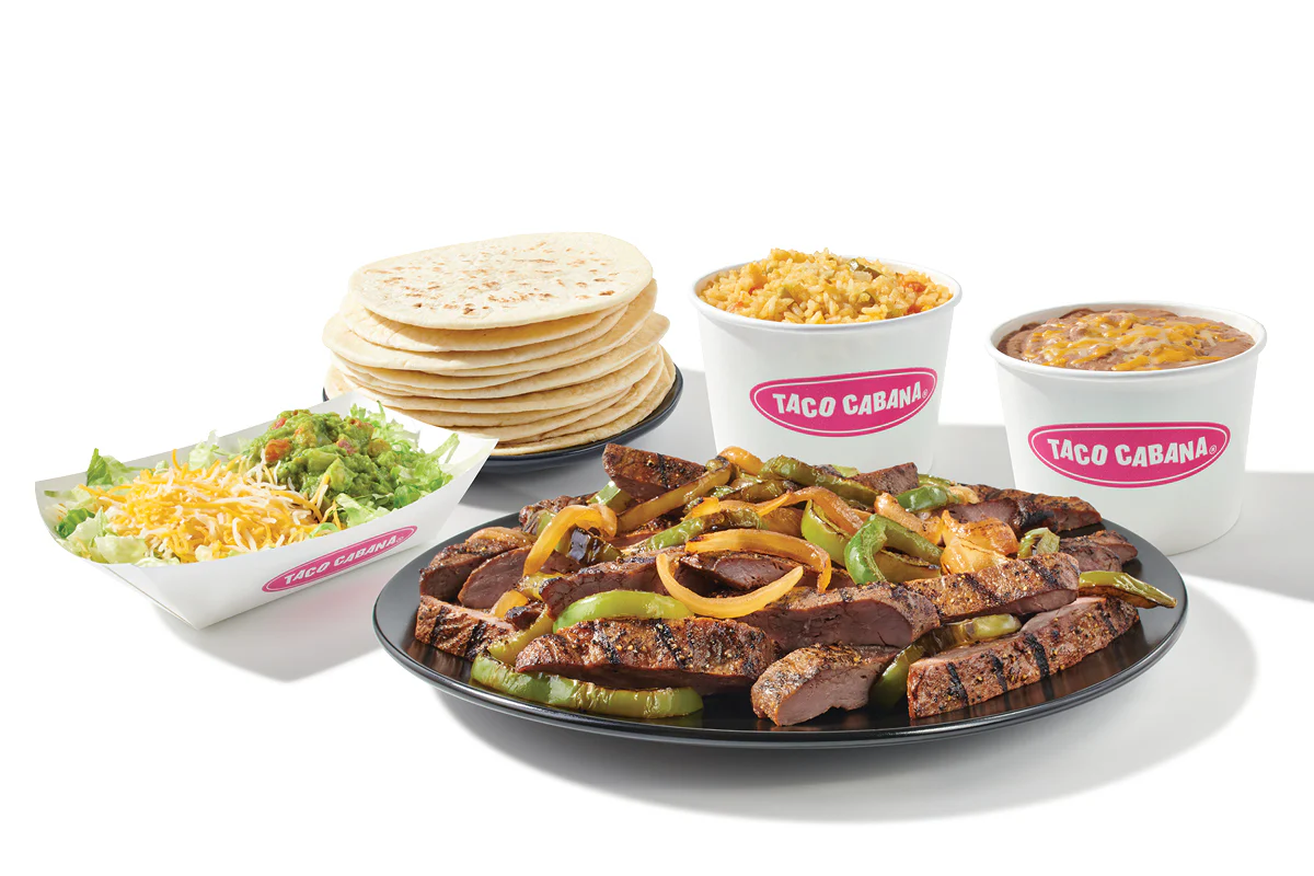 LFull Order (16 oz) (Steak Fajita) served with a blend of grilled peppers and onions, 16 oz rice, 16 oz refried or black beans, 12 flour tortillas, shredded lettuce, shredded cheese and guacamole.
