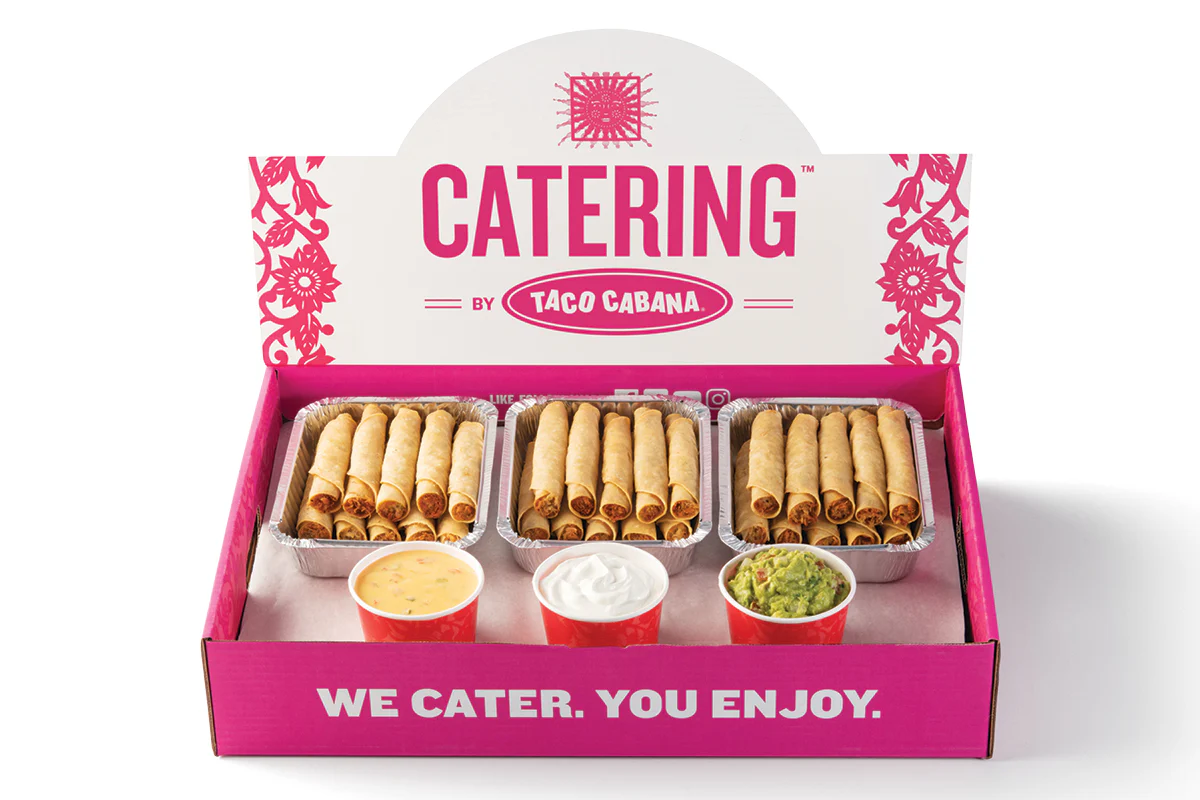 30 Chicken flautas and choice of queso, guacamole or sour cream for dipping.
