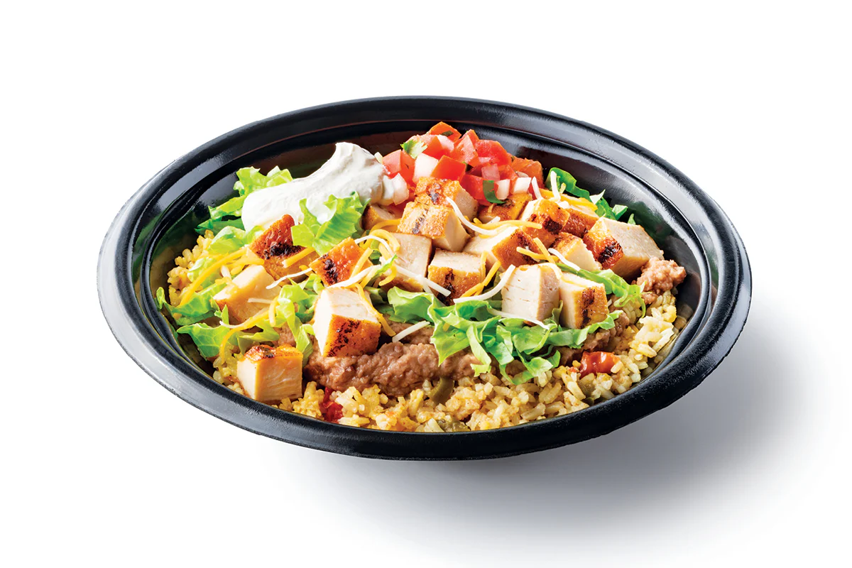 Your choice of meat, refried beans, rice, shredded lettuce, tomato, shredded cheese, sour cream, and pico de gallo.