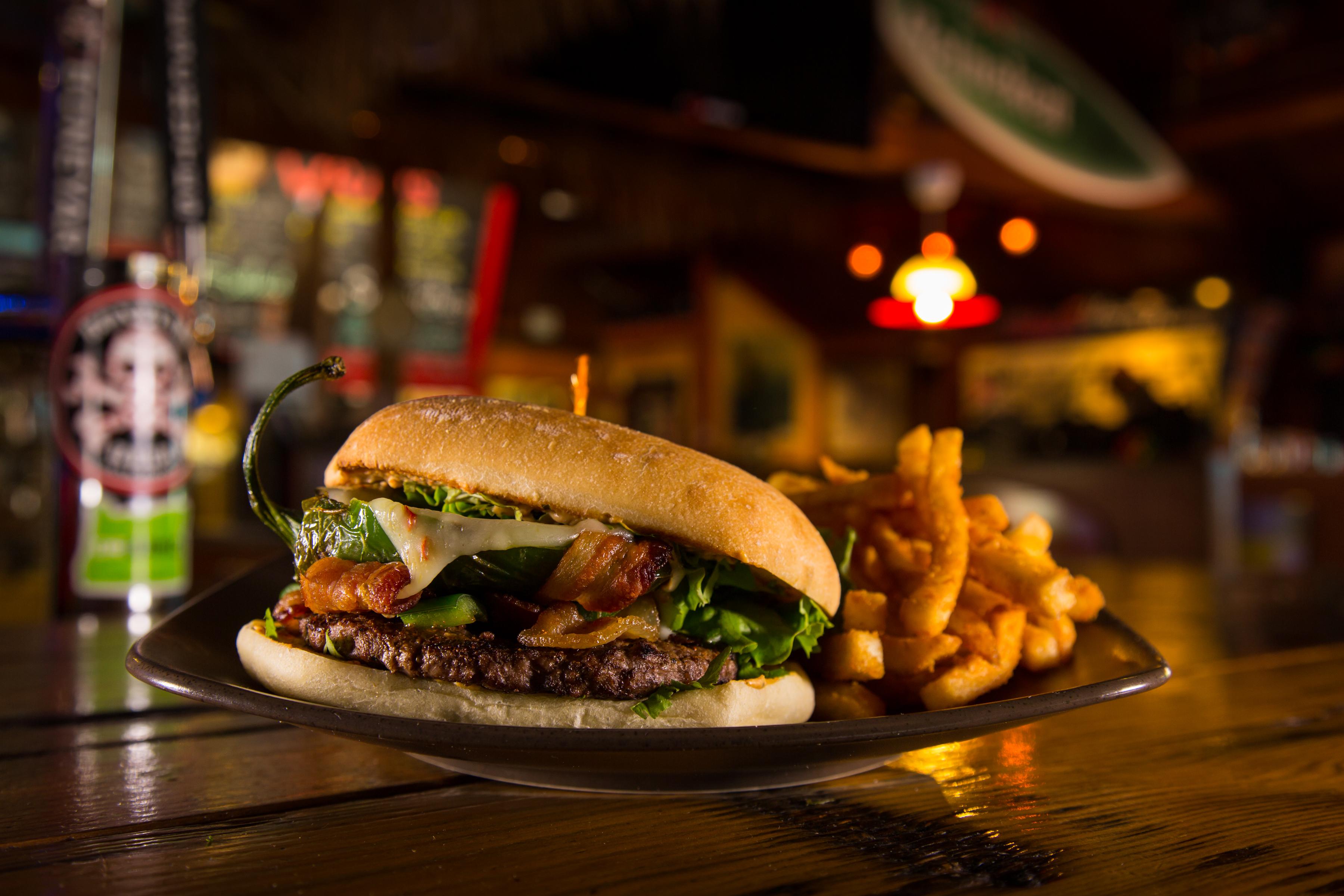 Burger patty topped with 1 deep fried bacon wrapped jalapeno, melted pepperjack cheese and a toasted bun slathered w/ chipotle spread and lettuce.