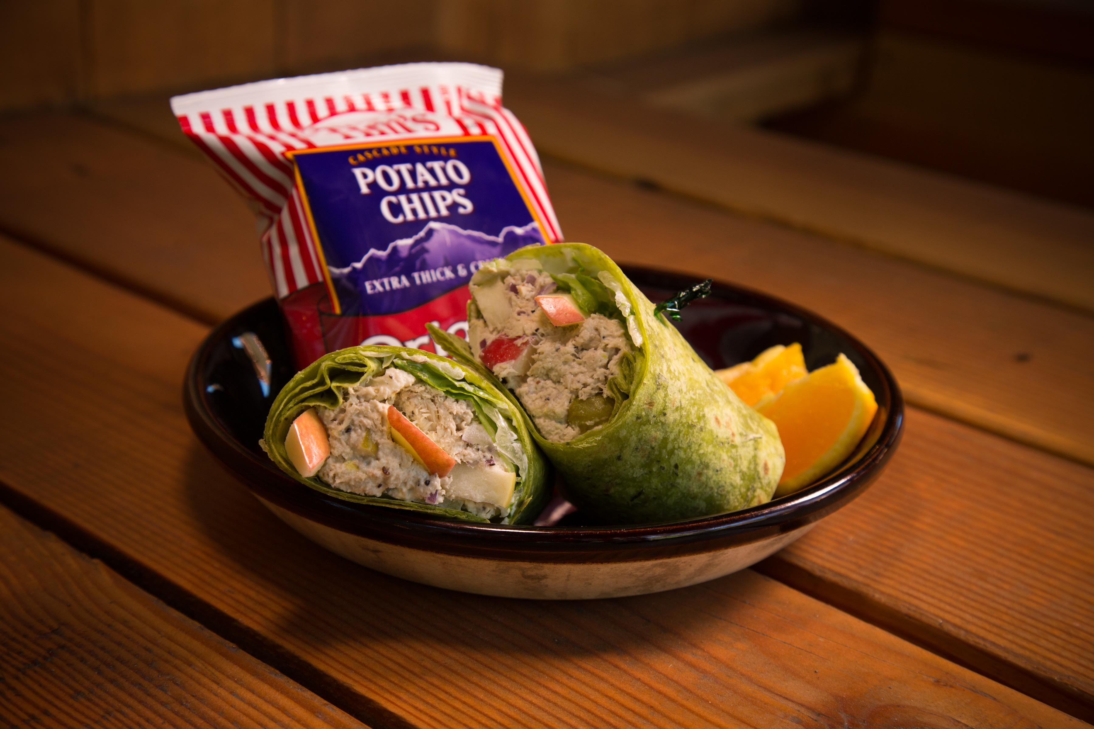 Albacore, apple chunks, picles, onion & romaine wrapped in a spinach tortilla.