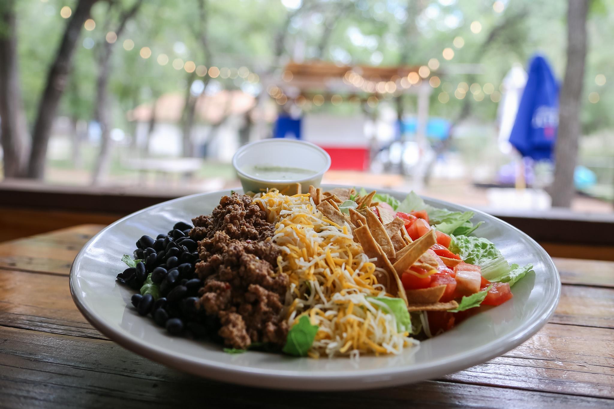 Romaine, cheddar, black beans, tortilla strips & ground beef served w/ salsa or jalapeno ranch.