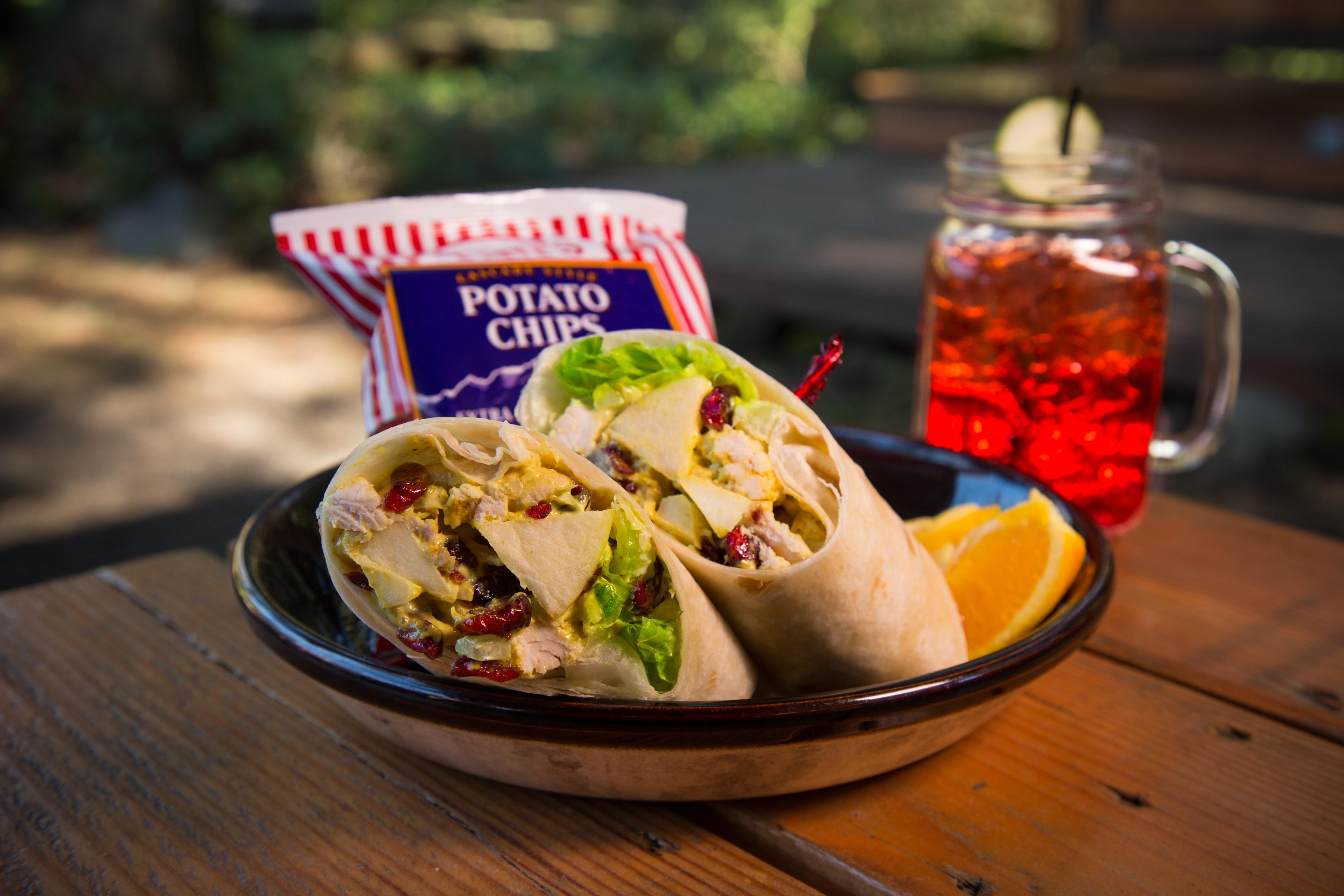 Curried chicken, apples, cranberries, romaine & mayo wrapped in garlic-herb tortilla.