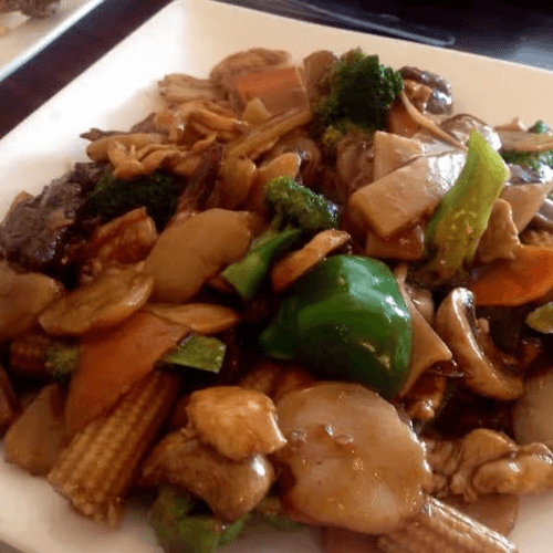 Beef, chicken, pork, shrimp, vegetables. Served with steamed or plain fried rice. Ice tea available upon request
