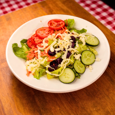 Lettuce, sliced tomatoes, cucumbers, crunchy carrots, black olives and mozzarella cheese. Dressing served on the side. >> Please add any special requests below