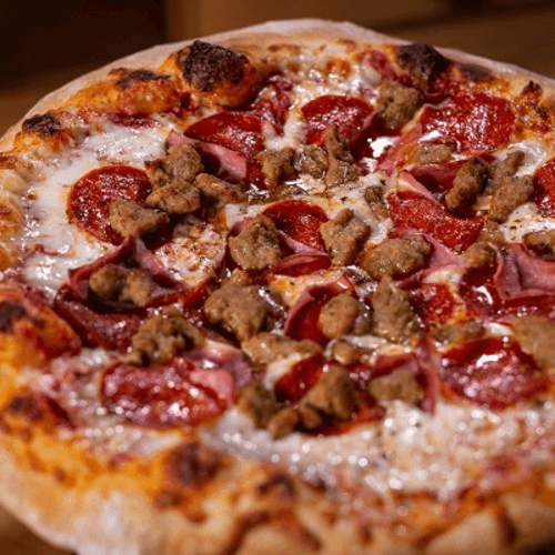 Pepperoni, Canadian bacon, Italian sausage, black olives, green peppers, fresh mushrooms & onions
