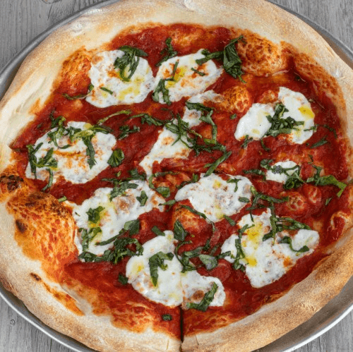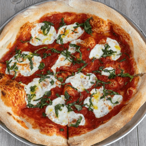 A timeless classic! Fresh mozzarella cheese, tomato sauce topped with fresh basil