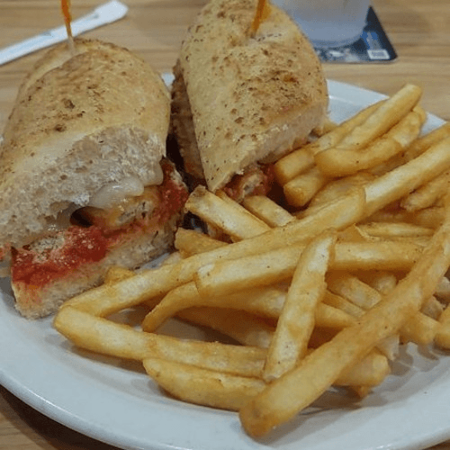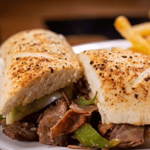 Chopped sirloin, served on our hoagie roll, provolone cheese, green peppers & onions with a dash of Franks Red Hot