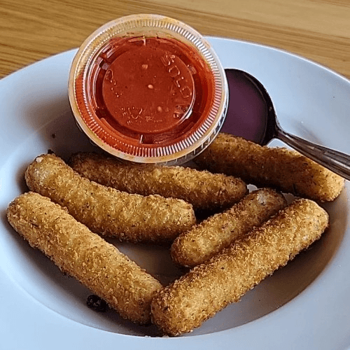 Breaded cheese sticks served with a side of marinara