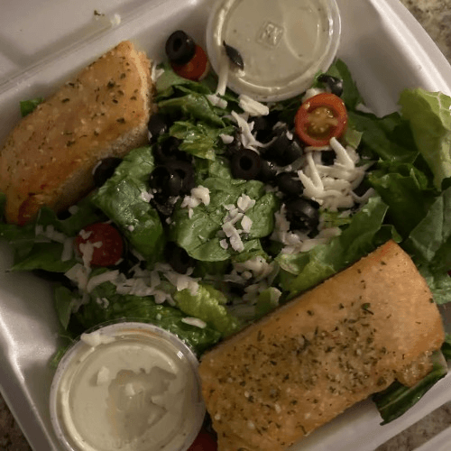 Leafy greens served with cherry tomatoes, black olives, grated cheese & two sides of ranch. Add Chicken for an additional charge!