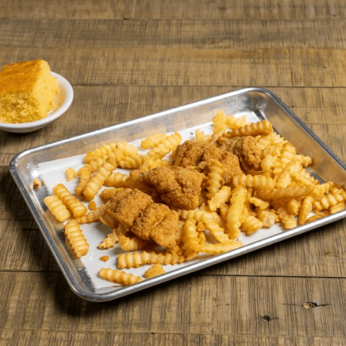 Seasoned, lightly battered, Fried to a Golden perfection 2 sides and cornbread included in Plate