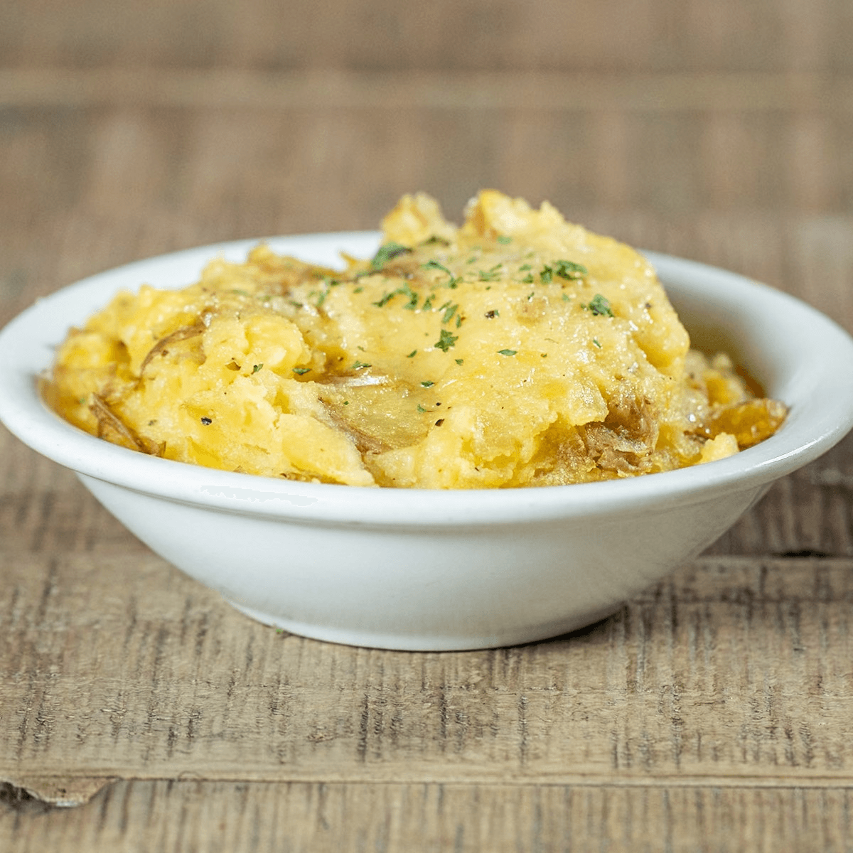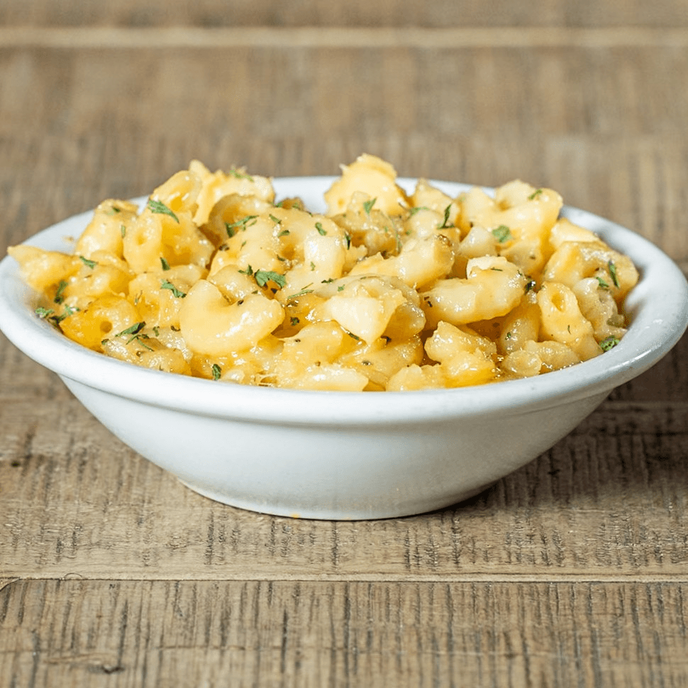Creamy macaroni pasta baked with rich cheddar cheese, topped with a sprinkle of fresh parsley.