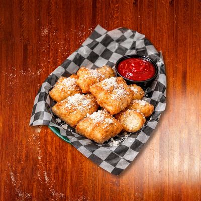 Small dough balls deep fried and coated in a Garlic Parm sauce, sprinkled with Parmesan Cheese. Served with our House Marinara Sauce.