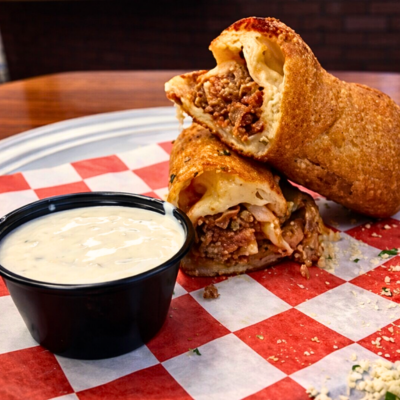 Our folded pizza dough, with Mozzarella and Ricotta Cheese + up to 3 toppings of your choice. Add in a dipping cup of our in-house marinara, and parmesan cheese on top and just... mmm.