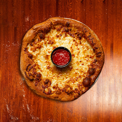 Our 10”Personal Dough topped with Fresh Garlic Paste Spread and Mozzarella Cheese. Served with a side of Marinara.