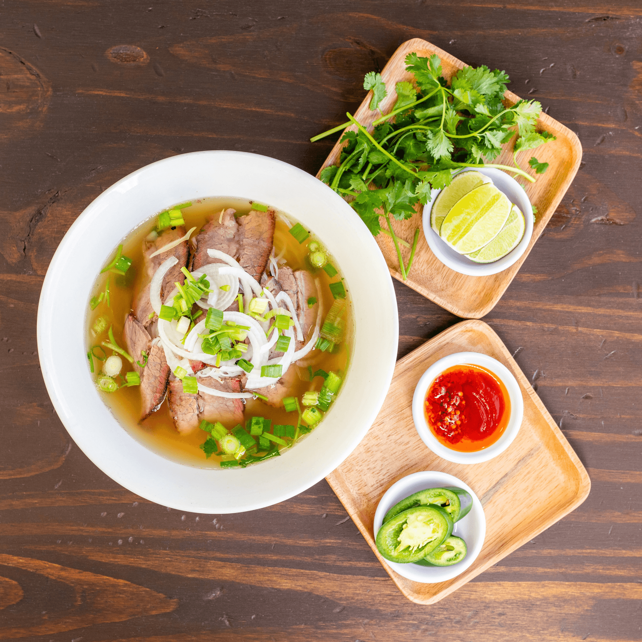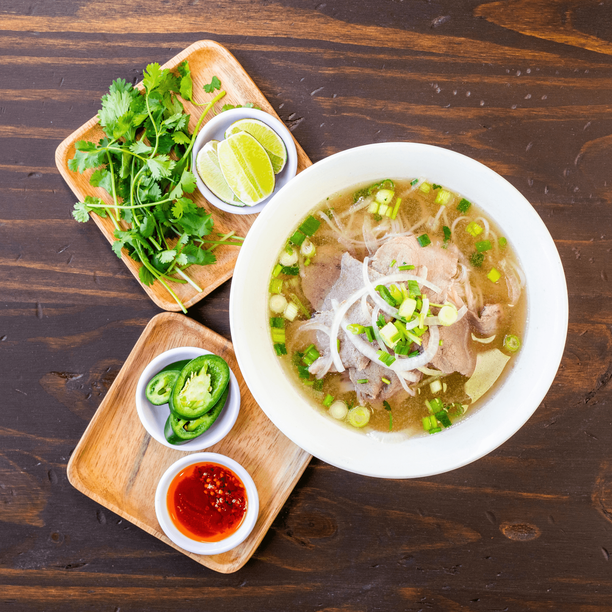 Our signature bowl that brings Texas smoke to Vietnamese soul — tender smoked brisket served in rich, aromatic pho broth. Big flavor, bold attitude, all San Antonio.