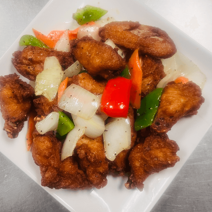 Diced chicken breast stir fried with tangy spicy & sweet chef's special sauce