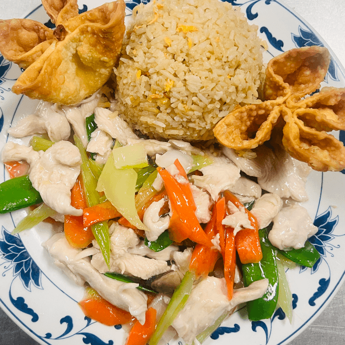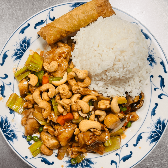 Diced chicken breast stir fried with slightly sweet sesame sauce topped off with sesame seeds