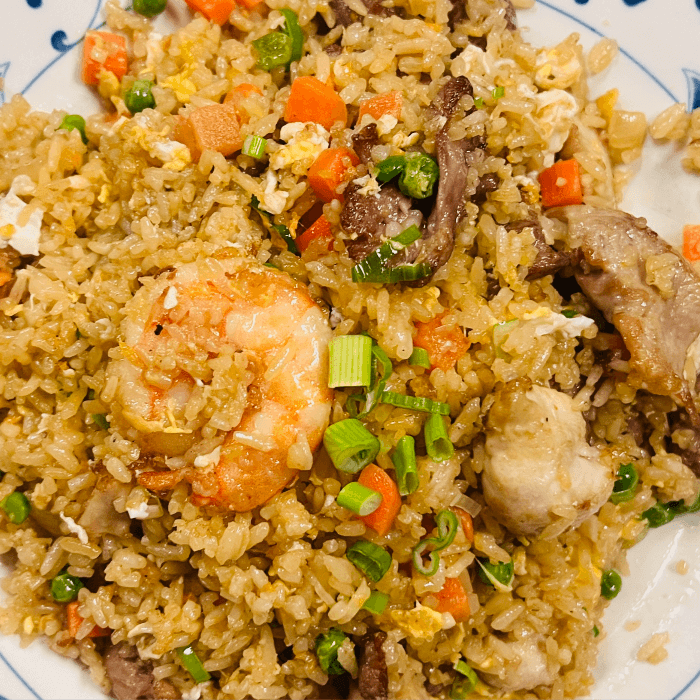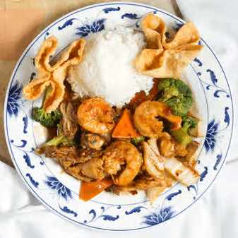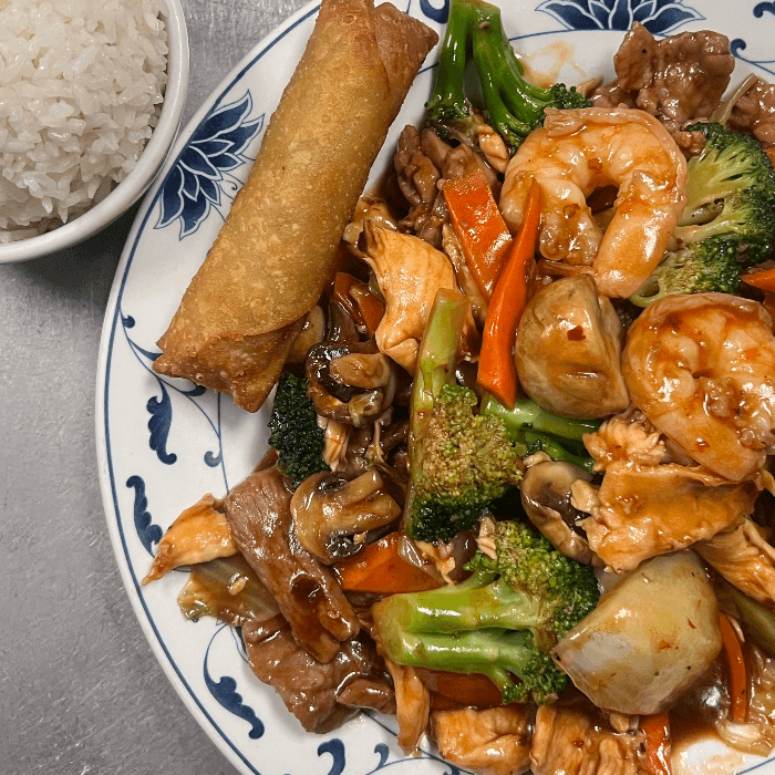 A combination of tender beef, chicken, shrimp, pork and fresh vegetables prepared in our special brown sauce