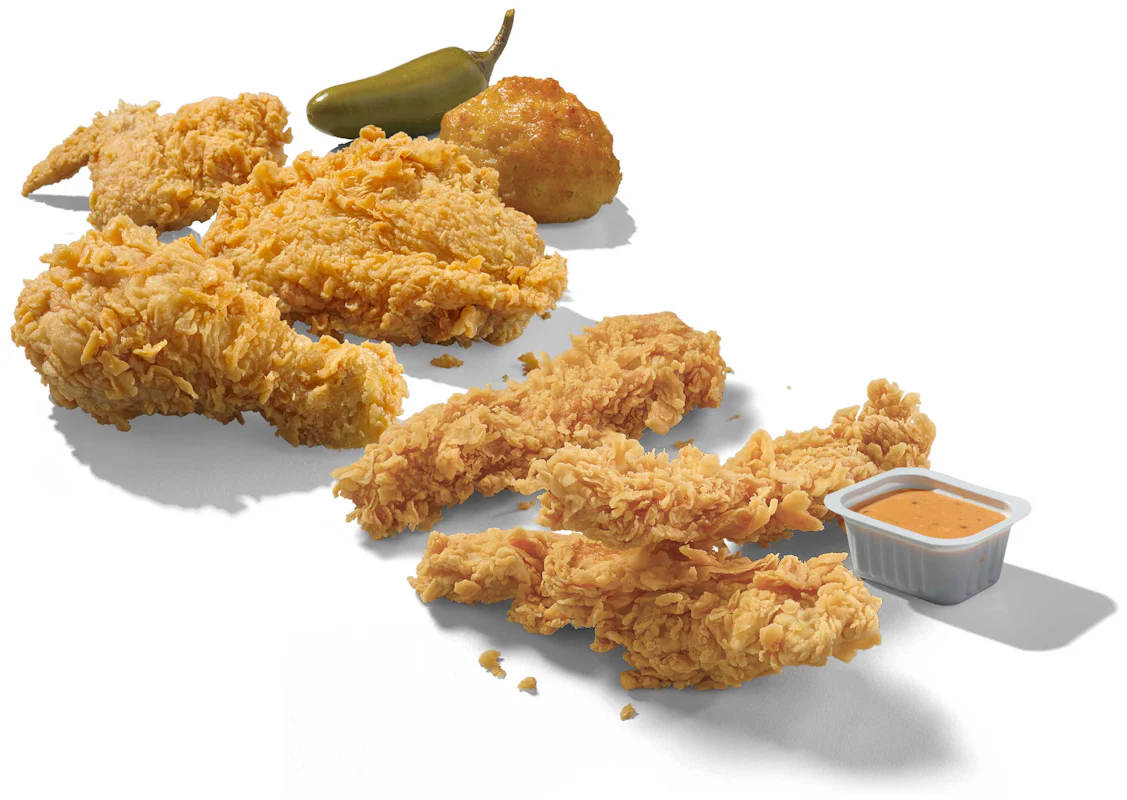 Served with a regular classic side, regular drink, dipping sauce, and a scratch-made Honey-Butter Biscuit™. Also available as Tenders only.