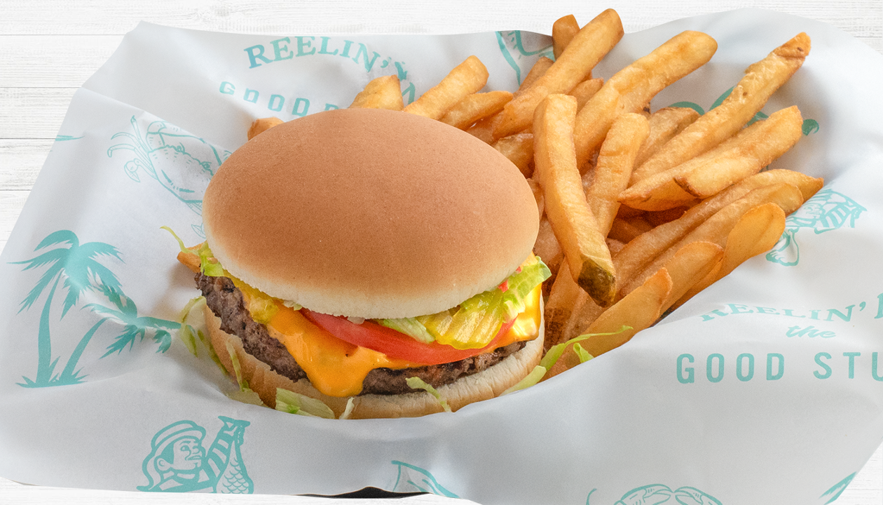 100% Angus Beef patty with cheese, lettuce and tomato. Served with French fries or choice of one side.