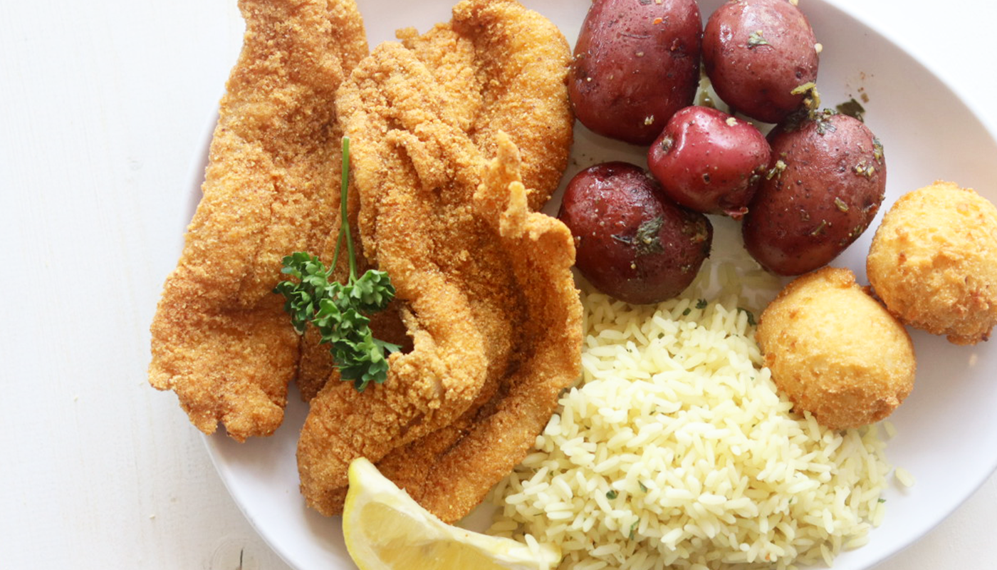 Hand breaded fried wild-caught shrimp and whitefish filet.
