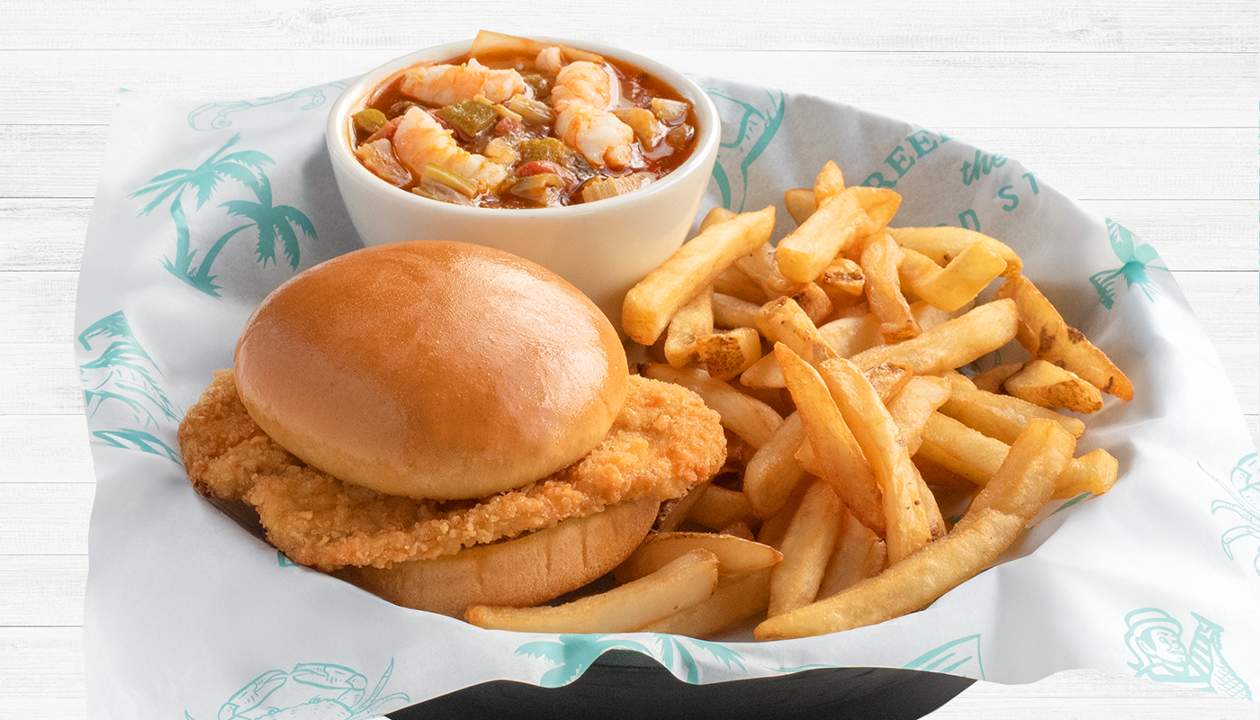 Classic Fish Sandwich with a cup of Shrimp Gumbo or Clam Chowder and one side of your choice. "A-Lunch" anyone?