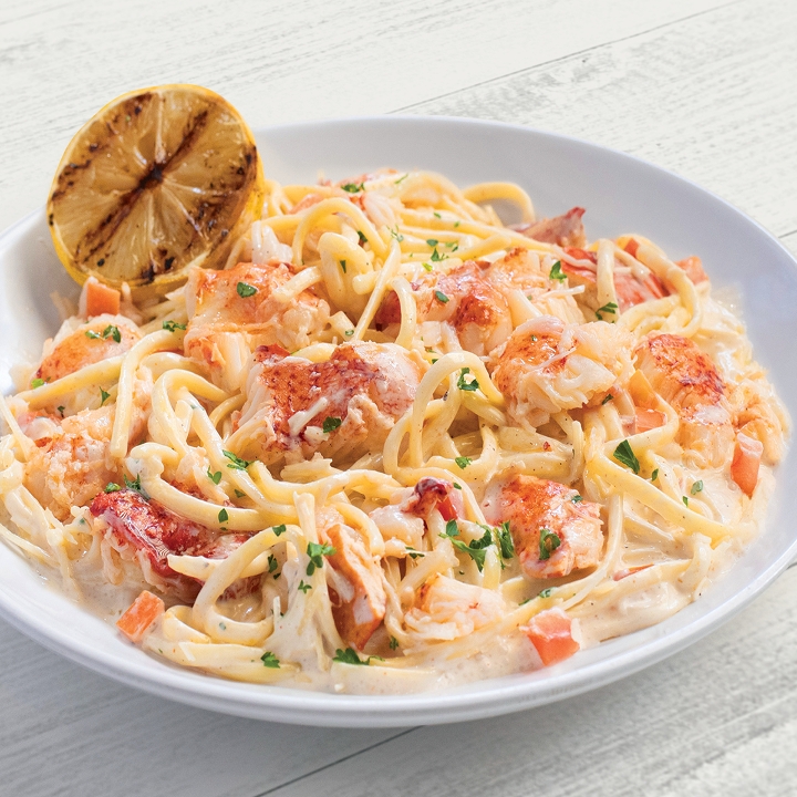 Linguine with a creamy tuscan butter sauce with tomatoes, garlic and shredded parmesan cheese topped with real Maine lobster.