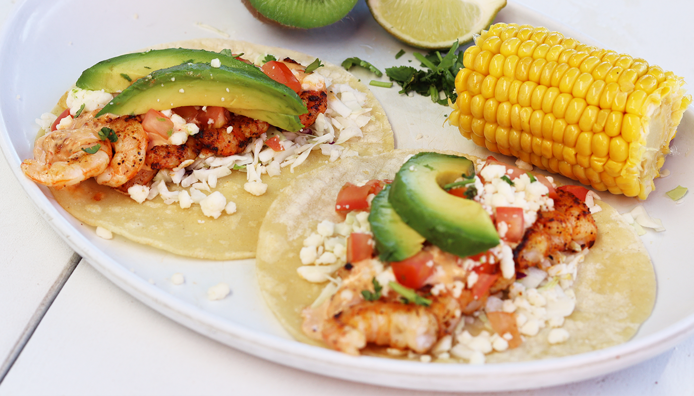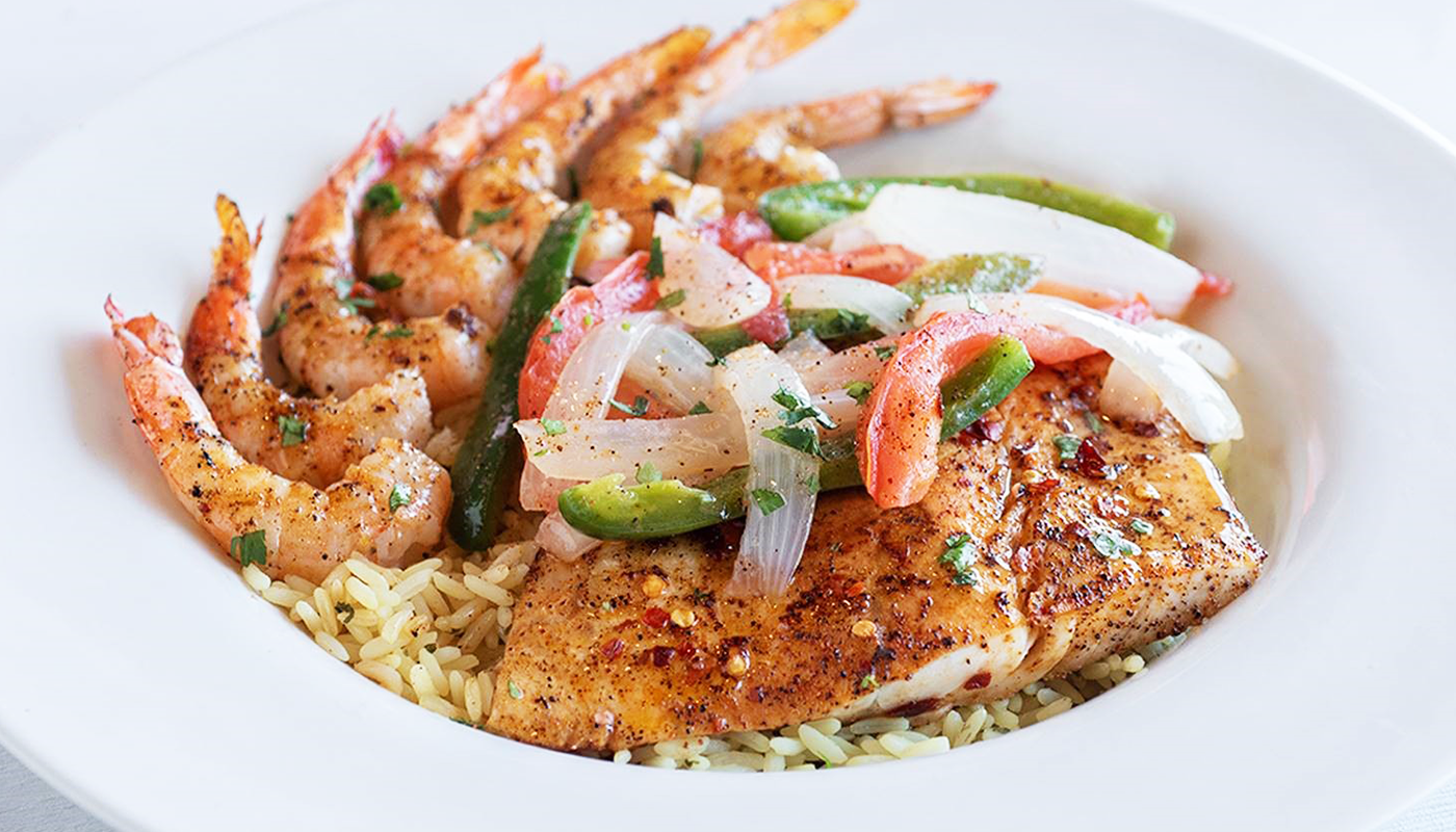 Grilled wild-caught shrimp and fish with Diablo spice and topped with sautéed tomatoes, onions, and jalapeños.